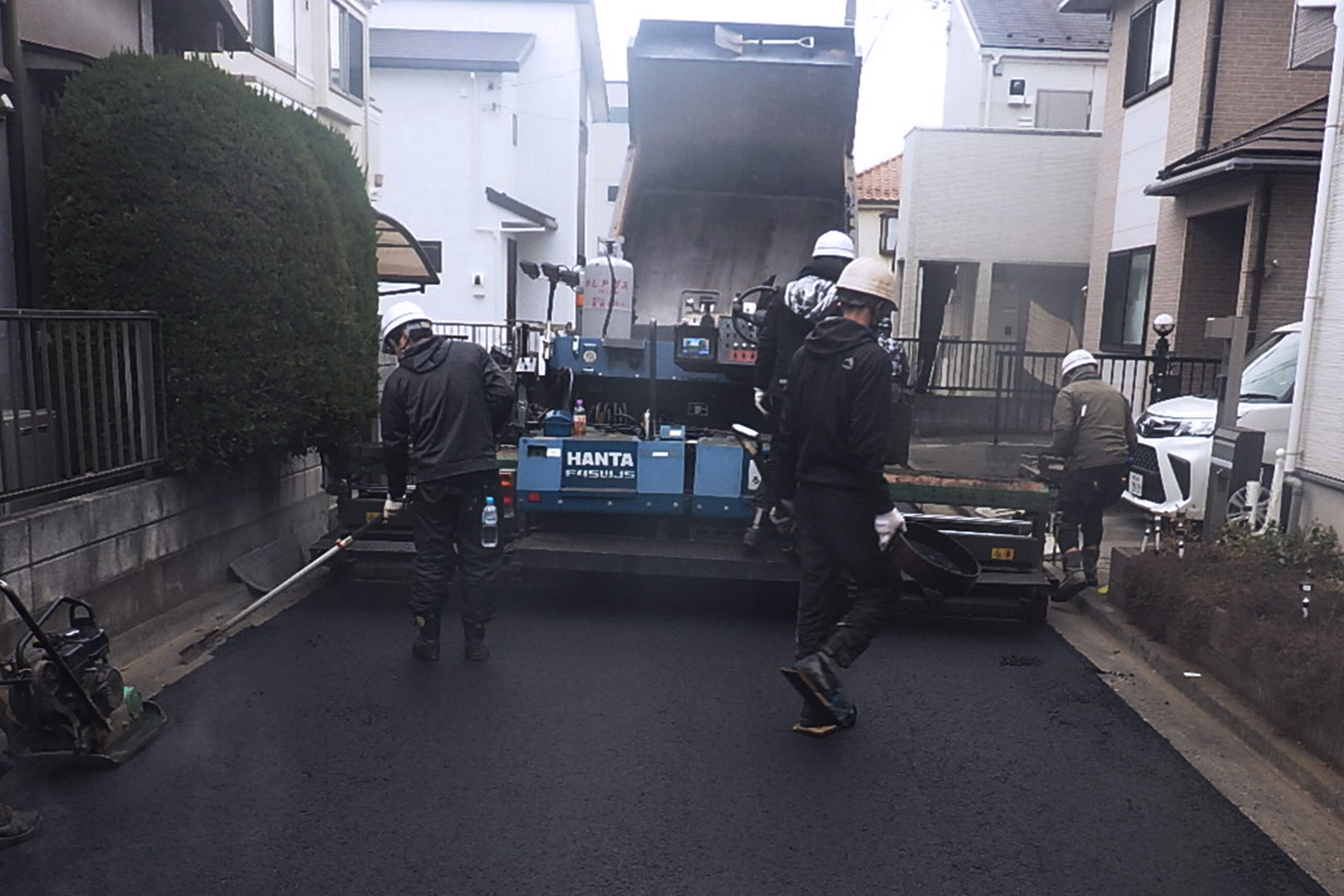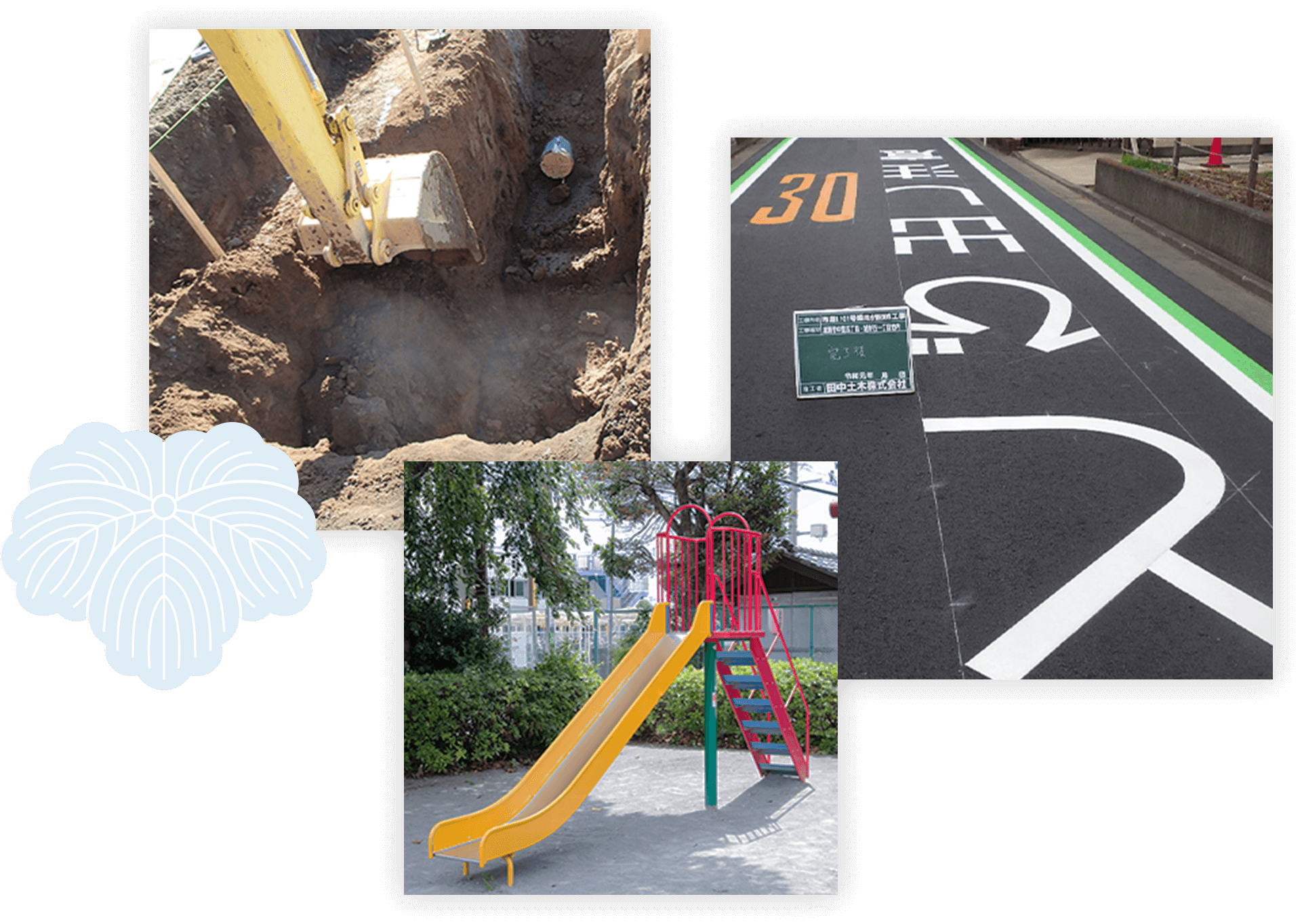 一般道路の舗装、駐車場・公園の整備舗装、駅前の歩道・遊歩道をはじめインフラ整備などを請け負っております。